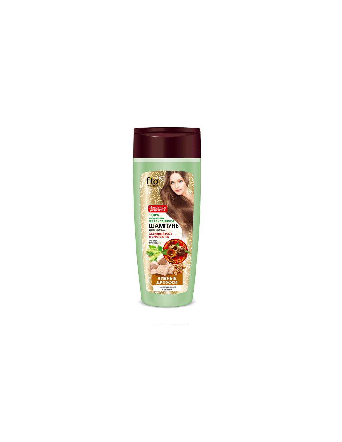 Szampon do włosów na bazie drożdży piwnych z szyszkami chmielu i słodem marki Fito Cosmetick- Aktywny wzrost i wzmocnienie - Do wszystkich typów włosów. Drożdże piwne, chmiel i słód – to wspaniała receptura dla aktywnego wzrostu włosów i ich wzmocnienia. Innowacyjna receptura szamponu na bazie naturalnych orzechów mydlanych delikatnie oczyszcza włosy, nawilża i zmiękcza skórę głowy, nadaje włosom naturalny blask i zadbany wygląd. Drożdże piwne wzmacniają cebulki włosów, stymulują wzrost mocniejszych włosów i dodając im miękkości i jedwabistości. Chmiel poprawia strukturę włosów, przywraca im objętość i blask. Słód sprawia, że włosy są wygładzone i zdyscyplinowane.