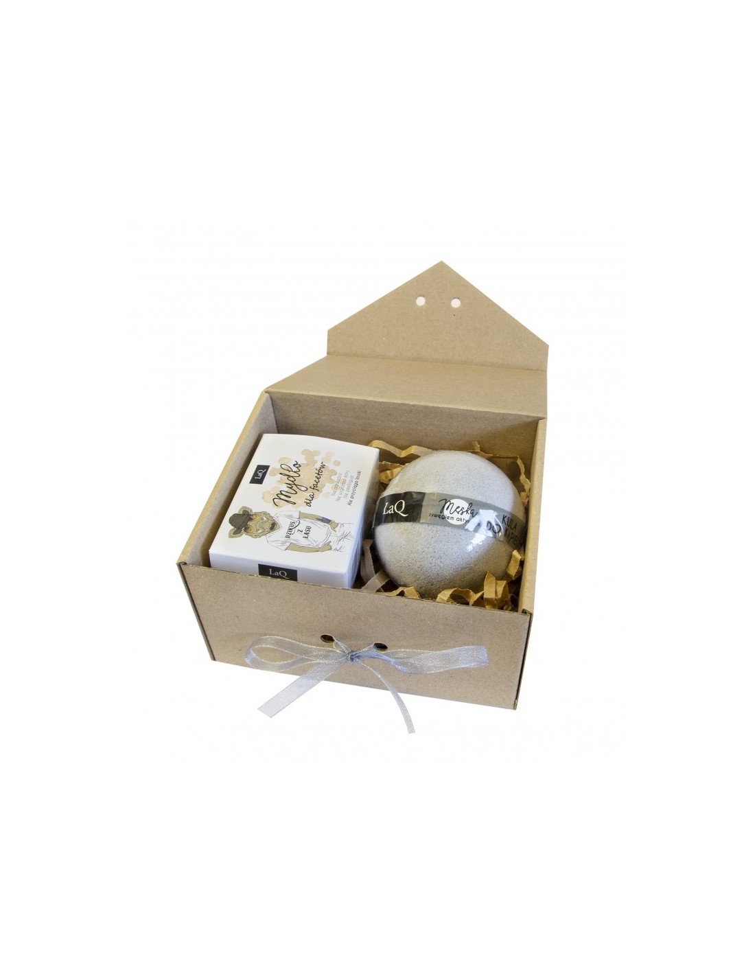 Elegancki zestaw prezentowy w kartoniku ze wstążeczką.