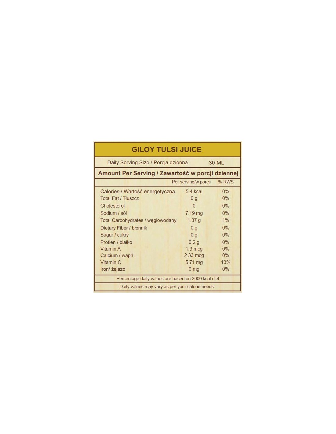 INGREDIENTS / Składniki: Tinospora cordifolia, Ocimum Sanctum, Sodium benzoate (E211).