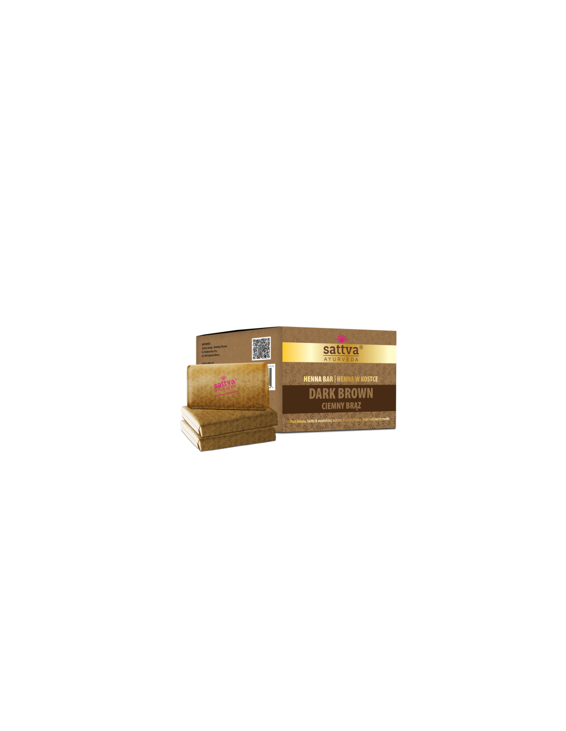 SATTVA HENNA W KOSTCE CIEMNY BRĄZ/DARK BROWN 240G (3 X 80G)