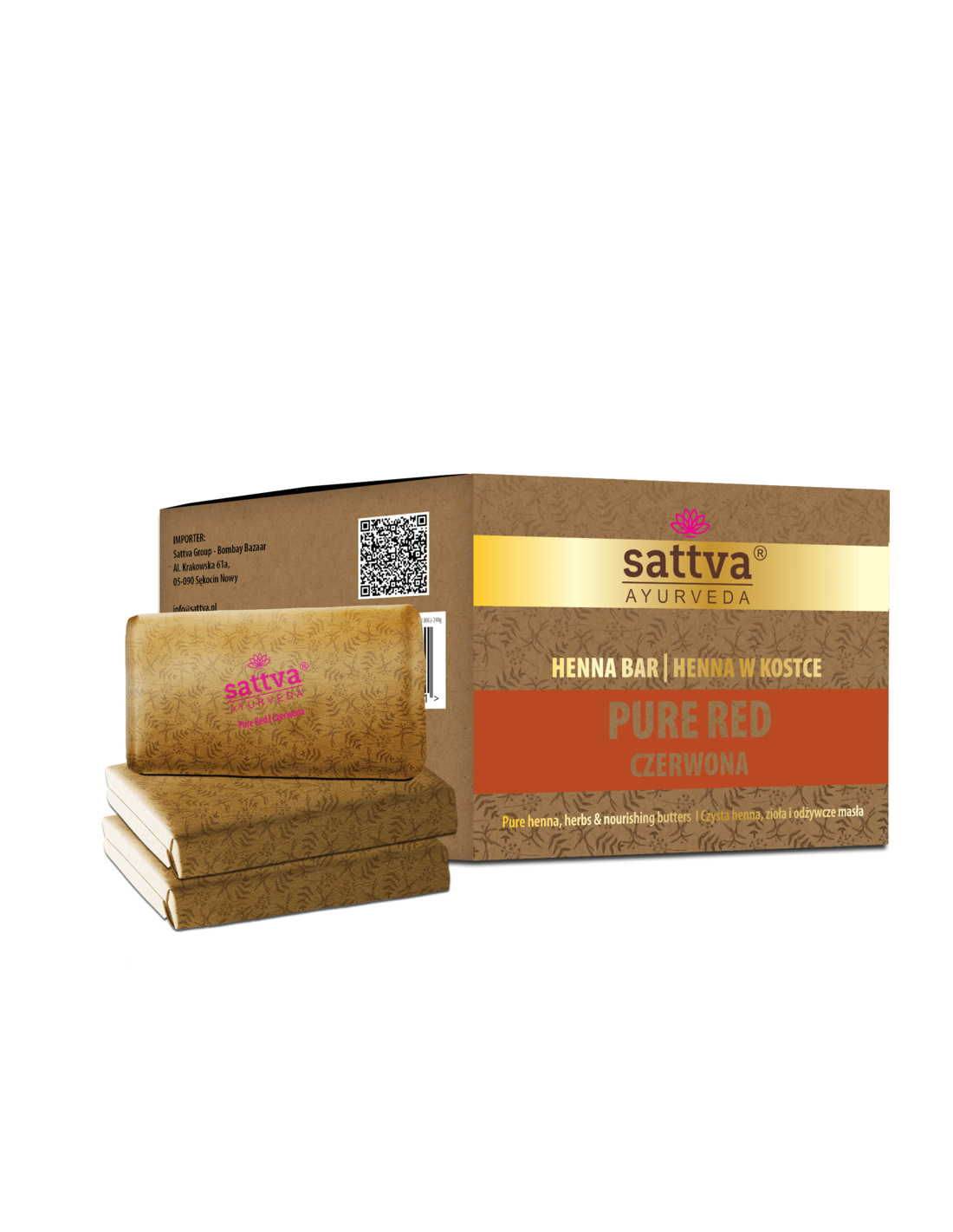 SATTVA HENNA W KOSTCE CZERWONA/ PURE RED 240G (3 X 80G)