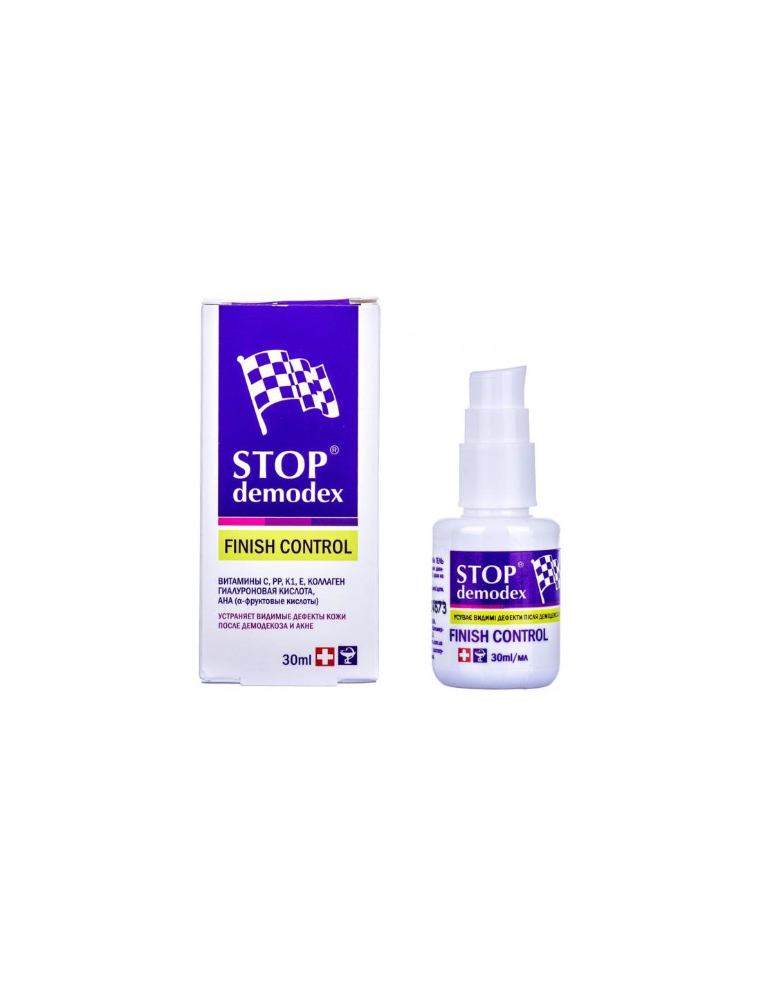 Działanie żelu oparte jest na uzupełnieniu ilości kwasu askorbinowego, tlenu i włókien kolagenowych w skórze, brak których sprzyja podtrzymywaniu stanu zapalnego. Kwasy AHA przyspieszają syntezę kolagenu, elastyny, glikozaminoglikanów i kwasu hialuronowego, głównych substancji niezbędnych dla ""budowy"" naszej skóry. Stosowanie Stop Demodex w ciągu 1-1,5 miesięcy normalizuje procesy rogowacenia, pigmentacji i wygładza mikro -relief skóry. Ponadto, główną cechą specyfiku jest to, że zawarte w nim kwasy zapobiegają mnożeniu się Demodex folliculorum. Także ze względu na kwaśne pH żelu na powierzchni skóry tworzy kwaśne środowisko, utrudniające przetrwanie mikroorganizmów chorobotwórczych.