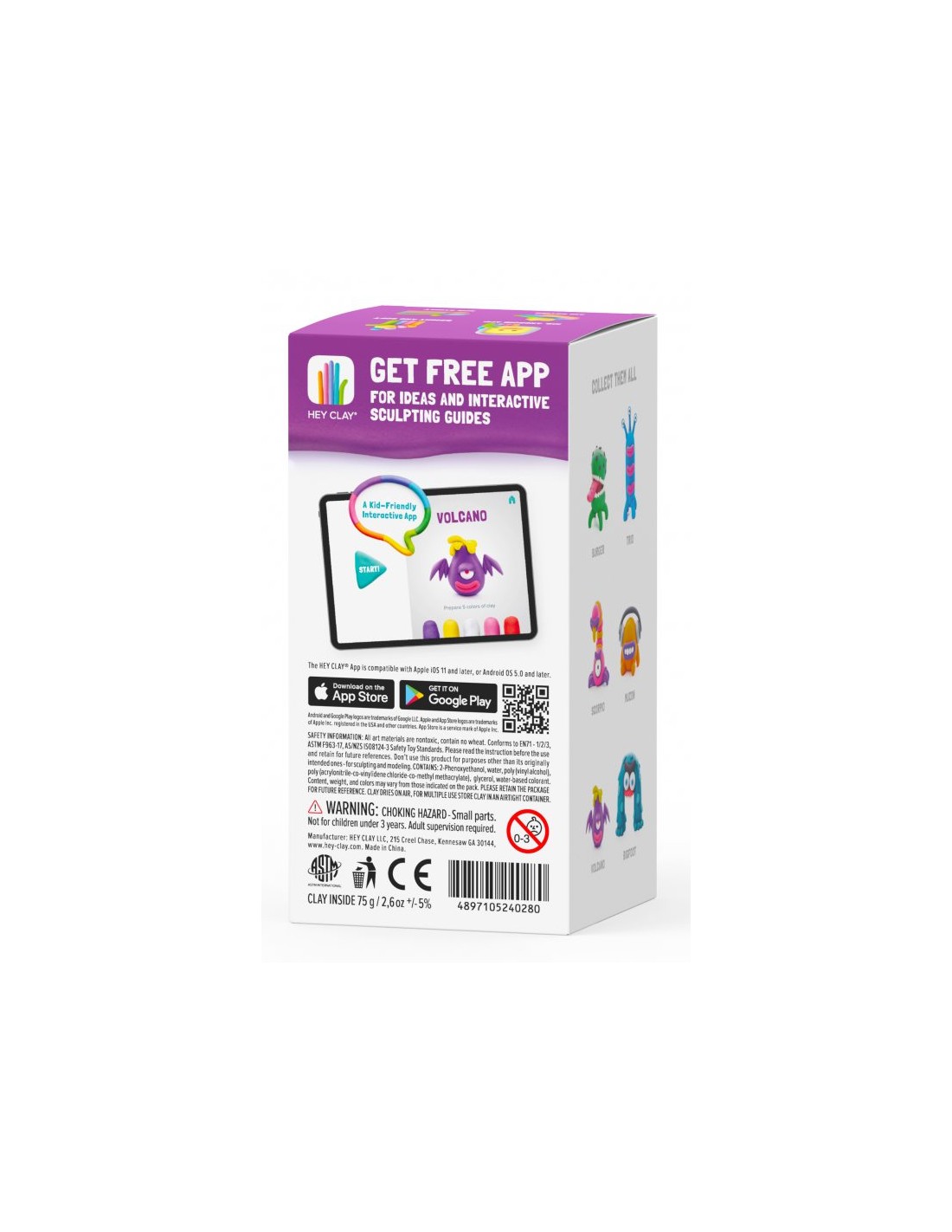 Masa plastyczna Volcano HCLMA003 to zestaw nieograniczonej kreatywności składający się 5 pojemników z miękką, delikatną i pachnącą masą. Kolory przedstawione są na opakowaniu, pozwalają na stworzenie wybranej figurki. Pewna ilość masy pozostaje, można ją użyć do realizacji własnych kreatywnych pomysłów. Kiedy skończysz lepić figurkę, odstaw ją na 24 godziny, aby stwardniała. Po tym czasie możesz się nią bawić! Kształtuj figurki, korzystając z instrukcji krok po kroku w aplikacji. Dowiedz się, jak wyrzeźbić każdą z nich w zabawny i interaktywny sposób. W zestawie otrzymujesz również bezpłatny dostęp do aplikacji HEY CLAY, która jest fascynującym i inspirującym przewodnikiem po kreatywnym modelowaniu. Dziecko zaczynając od prostych kształtów, wkrótce stworzy niesamowite figurki, zupełnie jak prawdziwy rzeźbiarz. Z pewnością zadziwią Cię dzieła Twojego dziecka!