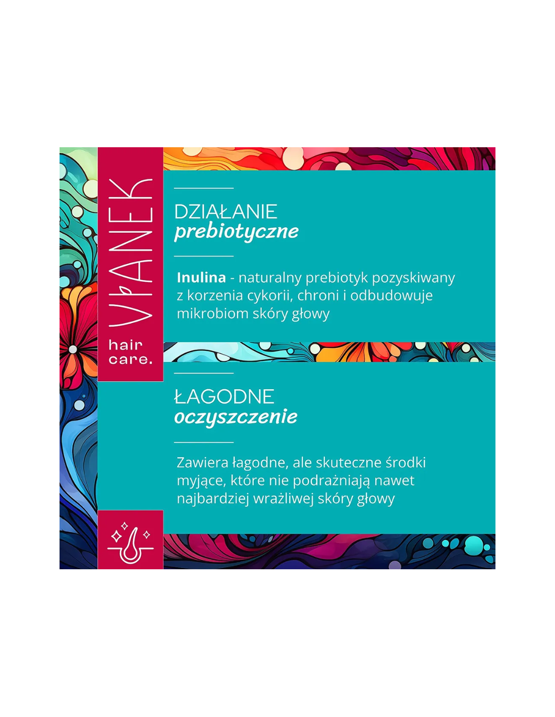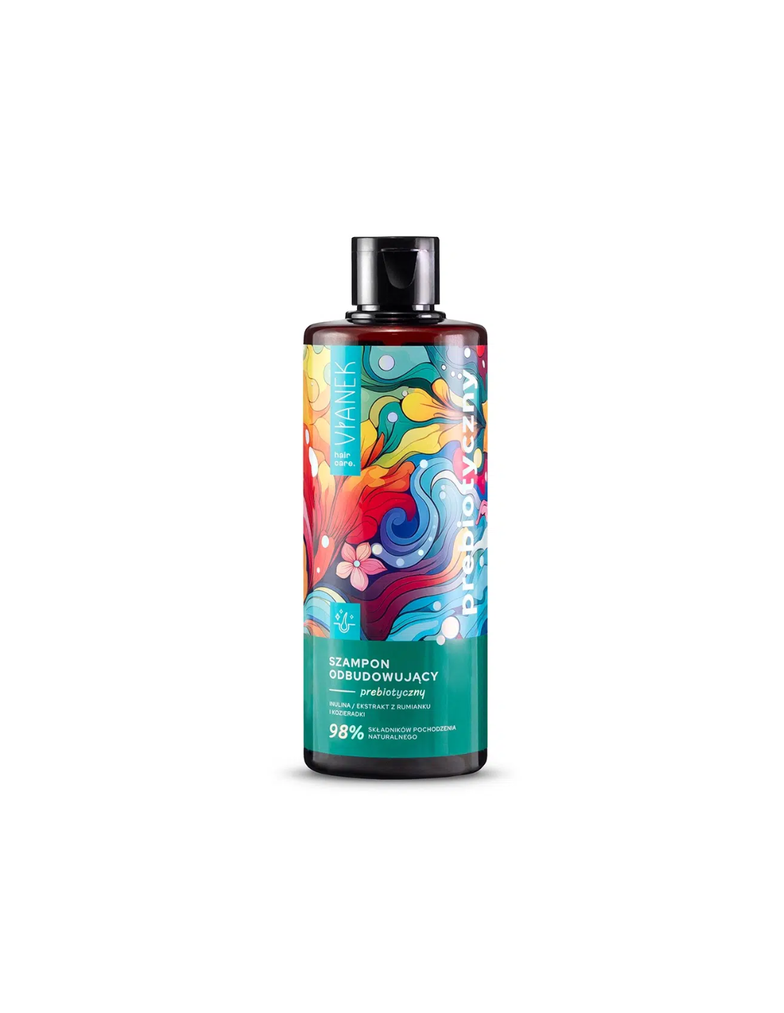 Odbudowujący szampon z prebiotykami do mycia suchych, łamliwych, wymagających regeneracji włosów. Poprawia kondycję skóry głowy, odbudowując mikrobiom. Delikatnie, ale skutecznie myje, nie powodując podrażnień. Sprawia, że włosy stają się mocne, miękkie i sprężyste.