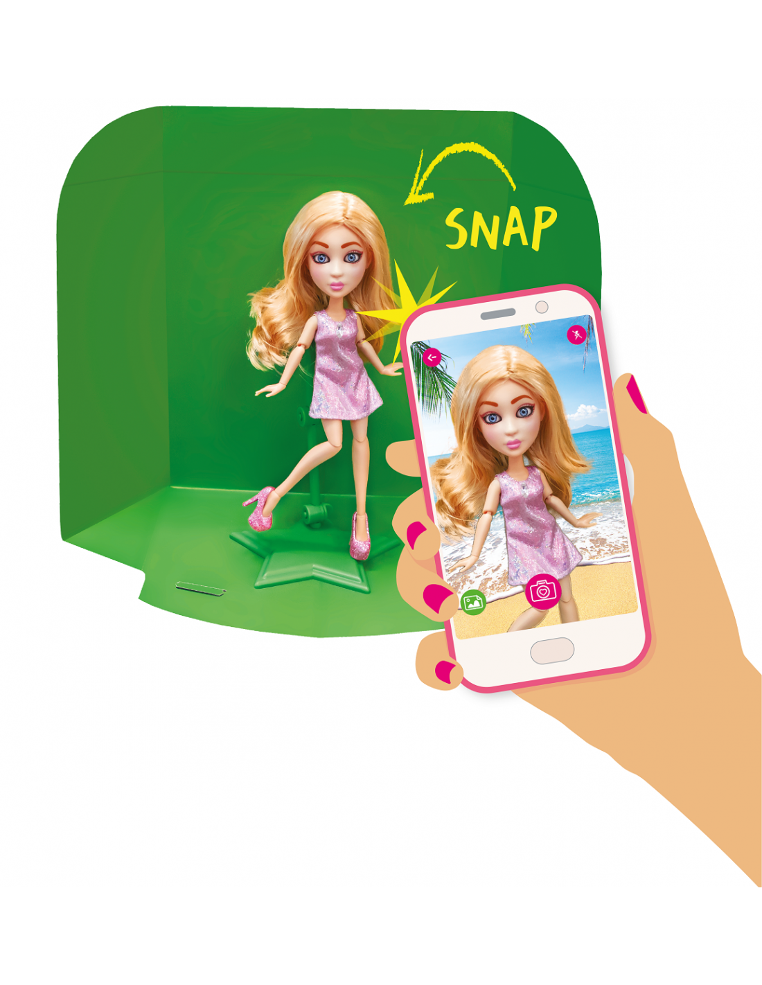Aplikacja Snapstar Studio z App Store na iOS i Google Play na Androida, gwarantuje super zabawę przy okazji rozwijając dziecięcą kreatywność i wyobraźnię. Dzięki niej, intuicyjnie można zmienić wygląd lalki: makijaż, fryzurę, dodatki, umieszczając postać na wyjątkowym tle.